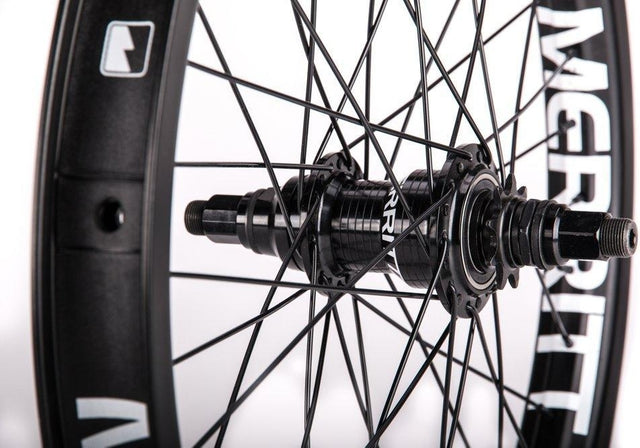 The Merritt Battle Freecoaster rear wheel combines the durable Merritt Battle Rim with the reliable Merritt MKII Final Drive Freecoaster Hub in black. Designed for demanding riders seeking durability and precision.