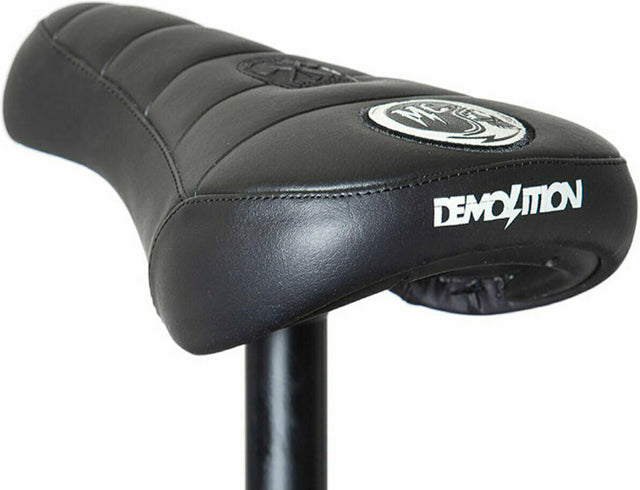 The Demolition MC Pivotal is Matt Cordova's signature saddle that combines style and functionality. Crafted from faux leather with a bold skull/helmet logo and embroidered Demolition branding, it's the perfect fit for any BMX bike. Its Fat Cap Padding ensures comfort even during intense sessions.