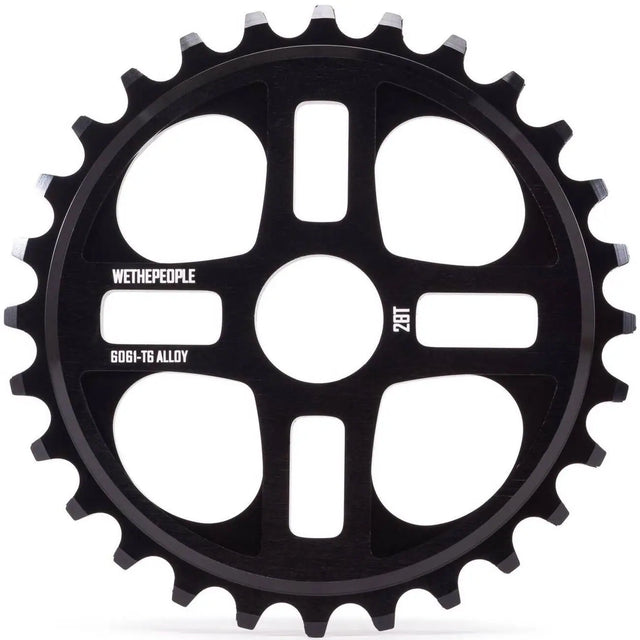 The Wethepeople 4Star Sprocket is a durable sprocket with a classic, four-spoke design, crafted from precision-machined 6061-T6 aluminum. Its 6.35mm thickness and robust construction make it ideal for demanding conditions. Available in two sizes (25T and 28T) and in elegant colors, it's the choice of many Wethepeople PRO riders.